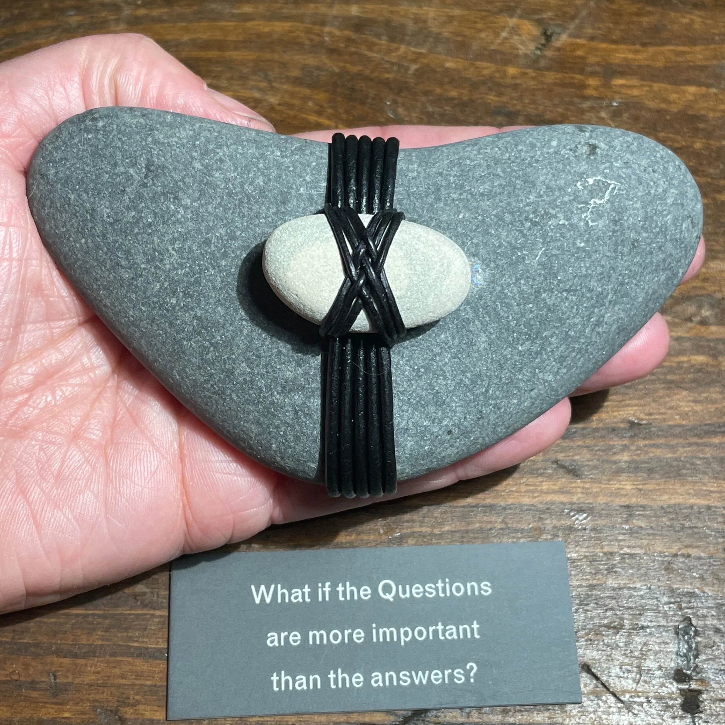 Use the two images as a guide for the size as compared to the 2.75" x 1.10" question card and to the size of my hand.